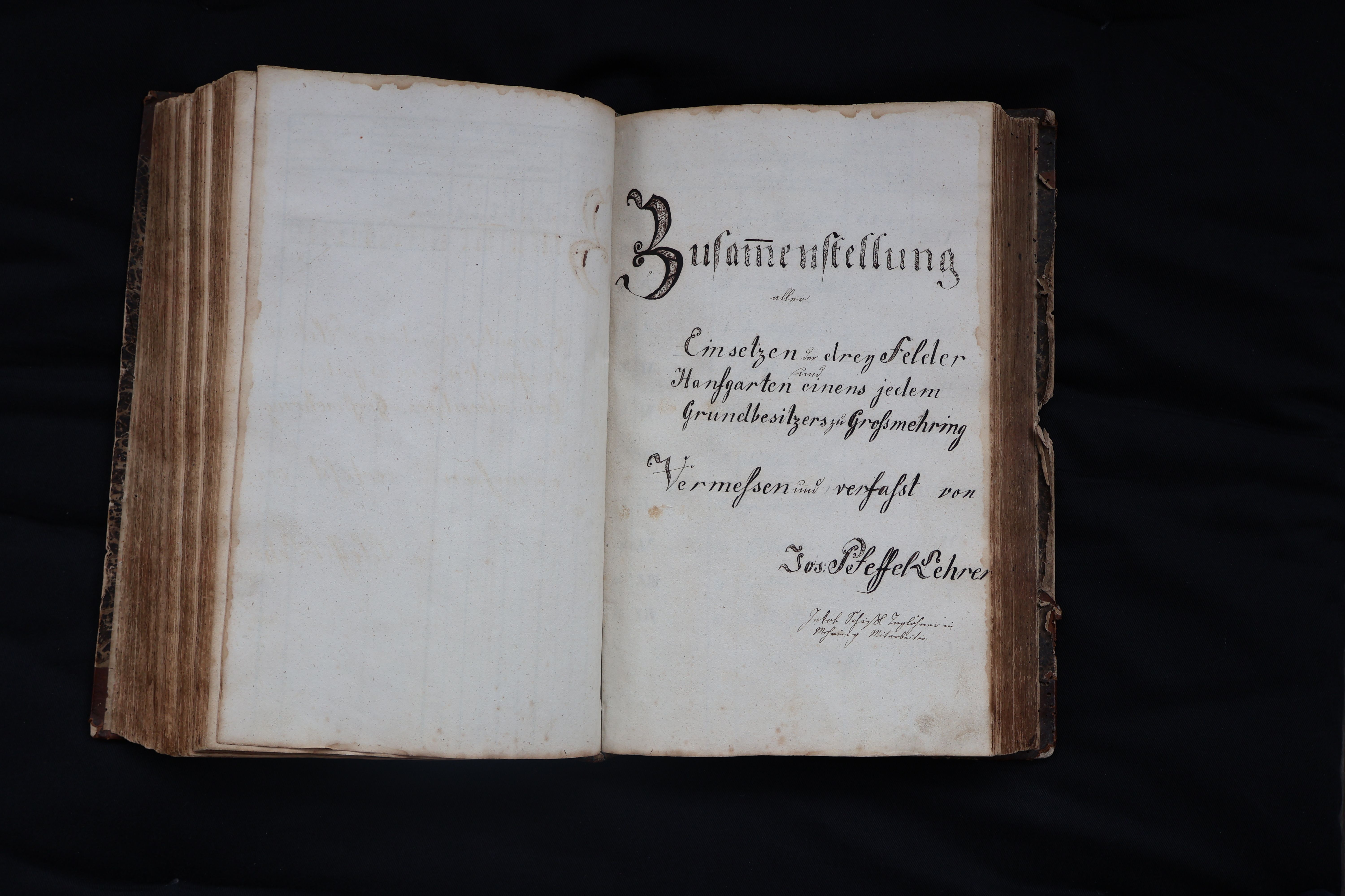 Lehrer Pfeffel hat die Mehringer Flur beschrieben und vermessen und in dem Grundbuch von 1821 zusammengefasst. Das Grundbuch ist in Privatbesitz.